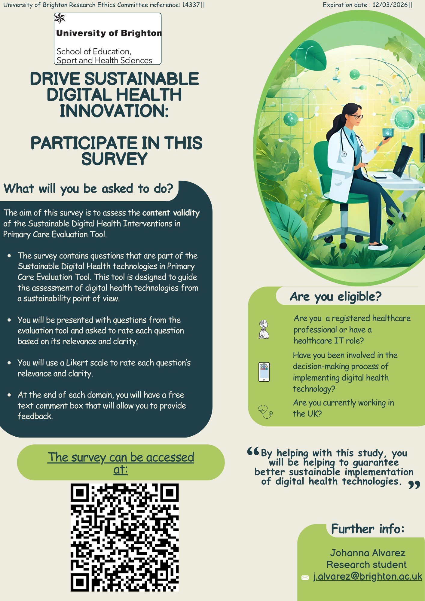 I am currently running a survey to assess the extent to which the Sustainable Digital Health Technology in Primary Care Evaluation Tool effectively captures the three key dimensions of sustainability, [environmental, social, and economic] when evaluating digital health technologies in primary care.