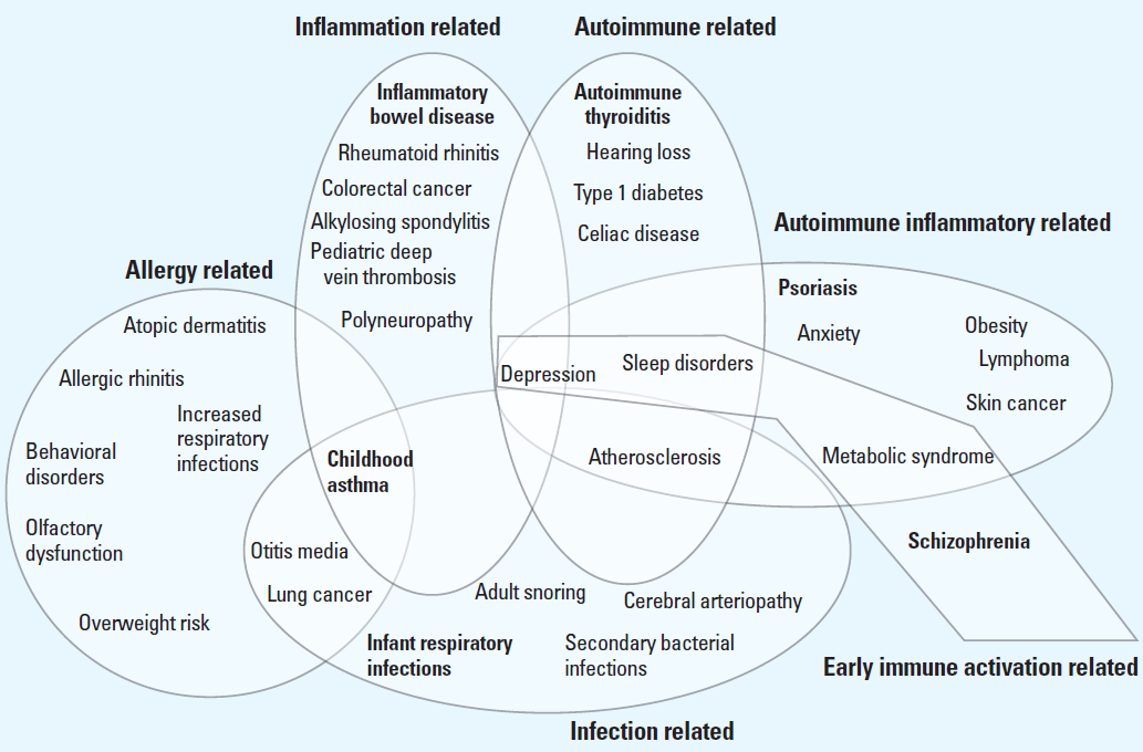 As an immunologist, Dietert sees similar opportunities for understanding the origins and consequences of disorders relating to immune dysfunction. Here, Dietert identifies five entryway conditions caused by insults to the developing immune system (see illustration, where entryway conditions are shown in bold).